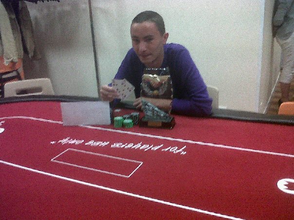 Après de longues soirées a lui enseigner les règles du poker, a lui expliquer que la couleur bat la quinte, et grâce a sa chatte immense, il gagne par hasard notre championnat…